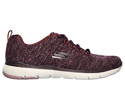 Surge forward in sleek sporty style and amazing athletic comfort with the SKECHERS Flex Appeal 3.0 - High Tides shoe. Soft flat knit mesh fabric upper in a lace up athletic sporty training sneaker with stitching accents and Air Cooled Memory Foam insole.