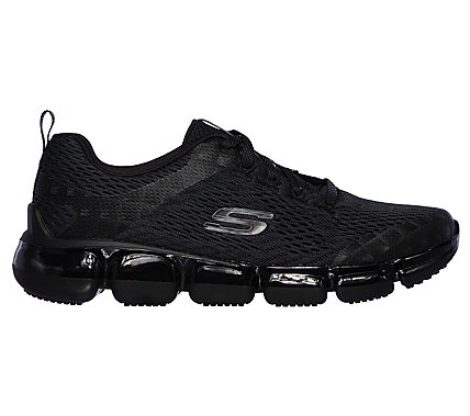 Experience the air cushioned comfort and sporty style of the SKECHERS Skech-Air 92 shoe. Soft woven athletic mesh fabric and synthetic upper in a lace up athletic sporty training sneaker with Air-Cooled Memory Foam insole and visible air cushioned midsole.