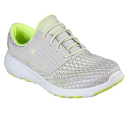 Iconic design and premium materials fuse with innovative Skechers Performance technology to achieve the ultimate in cooling comfort and style. Skechers On the GO Boat Cool - Breezy boat shoe has an open air mesh fabric and synthetic upper in a slip on stretch laced boat shoe with contrast accents. Goga Max insole.