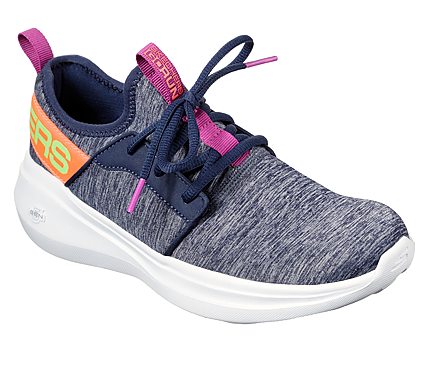 Skechers GOrun Fast - Lively is a well-cushioned, lightweight trainer perfect for a variety of workouts in and out of the gym. The responsive 5GEN® cushioning midsole and a breathable mesh upper offer an incredibly responsive workout shoe. Slip on laced-front design, Air Cooled Goga Mat cushioned insole.