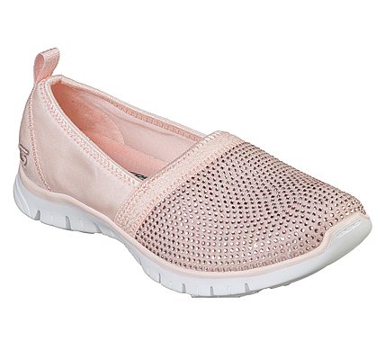 Go for the glittering style in a cushioned flexible design with the SKECHERS Relaxed Fit®: EZ Flex Renew - Shimmer Show shoe. Soft sleek Lycra fabric upper in a slip on sporty casual sneaker with stitching and overlay accents. Rhinestone accented front panel, Air Cooled Memory Foam insole.