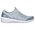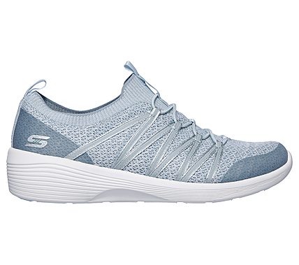 Climb to new heights of sleek sporty style and comfort wearing the SKECHERS Arya shoe. Nearly one piece soft smooth flat knit mesh fabric upper in a bungee laced slip on sporty casual comfort sneaker with stitching and overlay accents. Air Cooled Memory Foam insole, medium wedge lightweight heel.