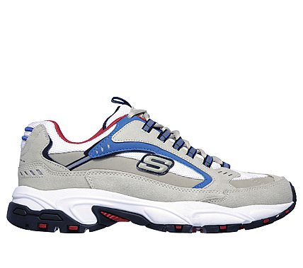 A classic athletic trainer gets a comfort update in the SKECHERS Stamina - Cutback shoe. Leather, synthetic and mesh fabric upper in a lace up athletic sporty training sneaker with stitching, overlay and perforation accents. Memory Foam insole.