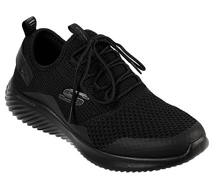 Get right to training in sleek style and flexible comfort with the SKECHERS Bounder - Arkala shoe. Soft knit mesh fabric and synthetic upper in a slip on laced-front sporty comfort training and walking sport sneaker with interwoven designs. Air Cooled Memory Foam insole, highly flexible comfort midsole.
