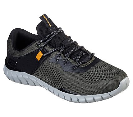 Remix your training shoe style with more style and more comfort in the SKECHERS Overhaul - Ryniss shoe. Soft woven flat knit mesh fabric and smooth synthetic upper in a lace up sporty walking and training sneaker with stitching accents and Air Cooled Memory Foam insole.