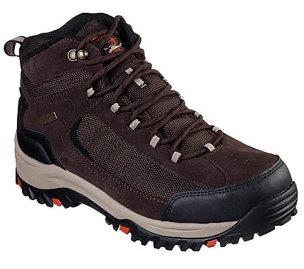 Tame the terrain in offroad-capable style and cushioned comfort wearing the SKECHERS Relaxed Fit®: Relment - Adwin boot. Waterproof durable smooth leather and cordura nylon mesh fabric in a lace up ankle height comfort hiking style boot with stitching and overlay accents. Air Cooled Memory Foam insole.