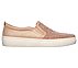 Raise the levels of sparkling fun style and comfort with the SKECHER Street Goldie - High Key shoe. Soft smooth sparkle-finish synthetic upper in a slip on fashion sneaker with glittering rhinestone designs, stitching and overlay detail. Air Cooled Memory Foam insole.