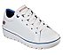 Keep your look so fresh and so clean with classic flair in the SKECHERS Street Cleat - Freshest shoe. Smooth leather and synthetic upper in a lace up casual classic sneaker with perforation, stitching and overlay accents. Platform outsole detail, Air Cooled Memory Foam insole.