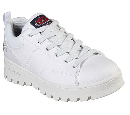 Go back to the original chunky sneaker style with updated comfort in the SKECHERS Street Cleat - Luckier shoe. Soft woven canvas fabric upper in a lace up casual classic sneaker with stitching and overlay accents. Platform outsole detail, Air Cooled Memory Foam insole.